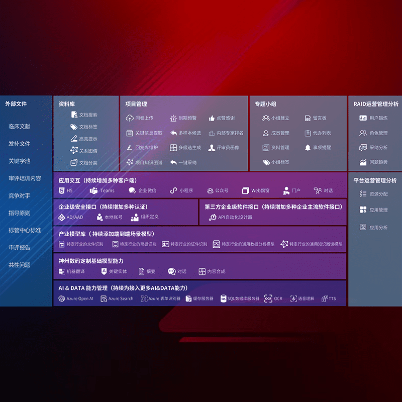 医疗器械产品上市前,,,,要熟悉严格与繁复评审标准,,,,整理分析监管机构指导文件中的海量信息。。。企业急需一个智能化解决方案,,,,提升知识管理效率,,,,提高评审通过率,,,,以提升其市场竞争力。。。。